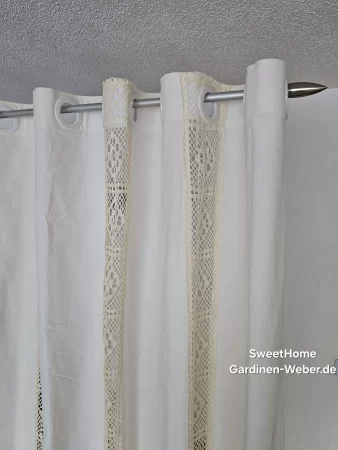 Ösen Schal Boho Stil. Maßen: Höhe ca. 245 cm. Breite ca. 150 cm. Farbe: beige Transparenz: blickdicht Leinenoptik. Preis für 1 Vorhang. Stoff: 100% Polyester. Achtung: durch unterschiedliche Bildschirmdarstellung können Farben abweichen! Pflege: fein Wäsche 30° Bügeln: Stufe 1- 1,5