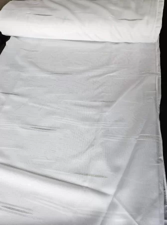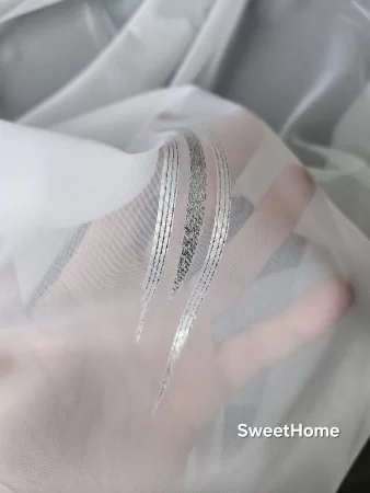 Voile Mit Bleiband. Qualität - Mischgewebe transparent. Farbe-weiß silber. Muster -Streifen, vertikal, Breite: - 300 cm. Pflege: - waschbar bis 30 Grad. Der Preis bezieht sich auf 1 Laufender Meter mit 300 cm. Breite (keine fertige Gardine!) Wenn Sie beispielweise Menge 5 bestellen, erhalten Sie 5 laufende Meter am Stück mit Breite 3m.